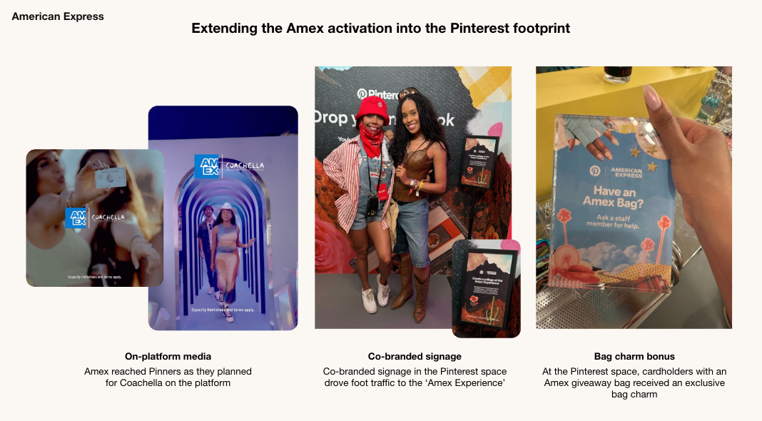 The Brief: Pinterest is where Coachella attendees visualize their dream trip, and AMEX is the card they use to get VIP access. How can we leverage the power of both brands to create a memorable and valuable experience at the festival.